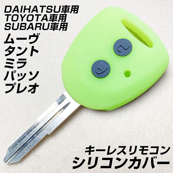 【IKT】(ダイハツ・トヨタ車用) キーレスキー用シリコンカバー 2ボタン 蛍光グリーン/ムーヴ/タント/ミラ/アトレーワゴン/パッソ/プレオ/ピクシス/など 専用設計でピッタリサイズ 傷防止 さらさらシリコン (ダイハツ/DAIHATSU車用・トヨタ/TOYOTA車用)(DKS-001KGR) | KAZESHOP