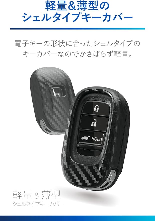 電子キーの形状に合ったシェルタイプのキーカバーなので、かさばらず軽量です。