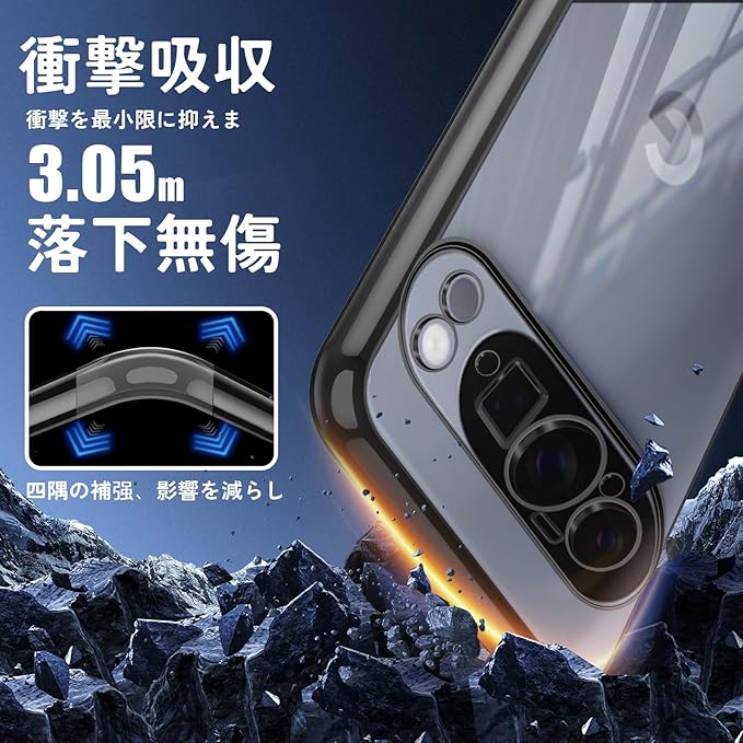 【驚きの透明感・メッキ加工】Pixel 10 Pro XL用ケースの背面は透き通った高い透明度を誇り、フレームは多層メッキ加工技術によって設計。オシャレで独特の輝きを放ち、シンプルで高級感溢れています。9aの美しさはそのままに本体を保護しているのです。そして、これはPixel 10 Pro XL の指紋認証を完全にサポートします。
