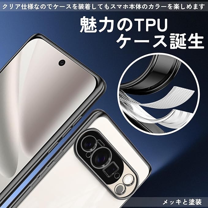 Google Pixel 10 Pro XL 用 ケース クリア TPU 薄型 ピクセル10Pro XL カバー スマホケース 耐衝撃 スリム 透明 シリコン ストラップホール付き 10ProXL ケース ブラック | KAZESHOP