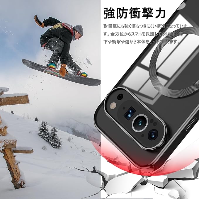 【強防衝撃力・全面保護】耐衝撃にも強く傷もつきにくい構造になっています。全方位からGoogle Pixel 9を保護してくれます。落下や衝撃や傷から本体をしっかり守ります。それに、背面の縁を高く設計し、Google Pixel 9の液晶画面をキズから保護します。落下、衝撃、擦れ傷など一切心配ありません。様々な場所で携帯を快適に活用できます。