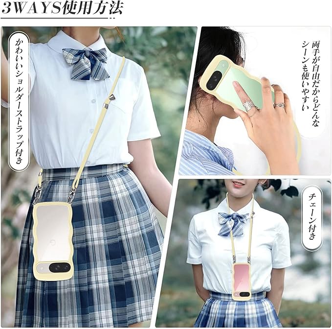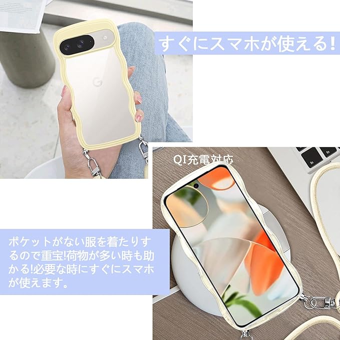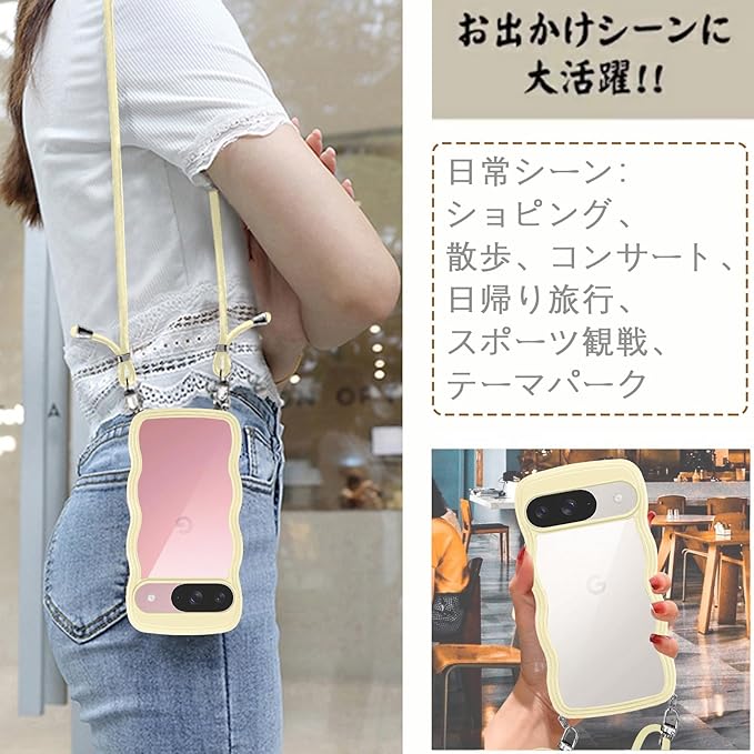 Google Pixel 10/pixel10 Pro 用の ケース ショルダー クリア グーグル ピクセル10/10pro スマホケース 透明 TPU カバー ストラップ付き 肩掛け 首掛け 紐付き 斜めがけ 創意 個性 可愛い かわいい 韓国 耐衝撃(イエロー) | KAZESHOP