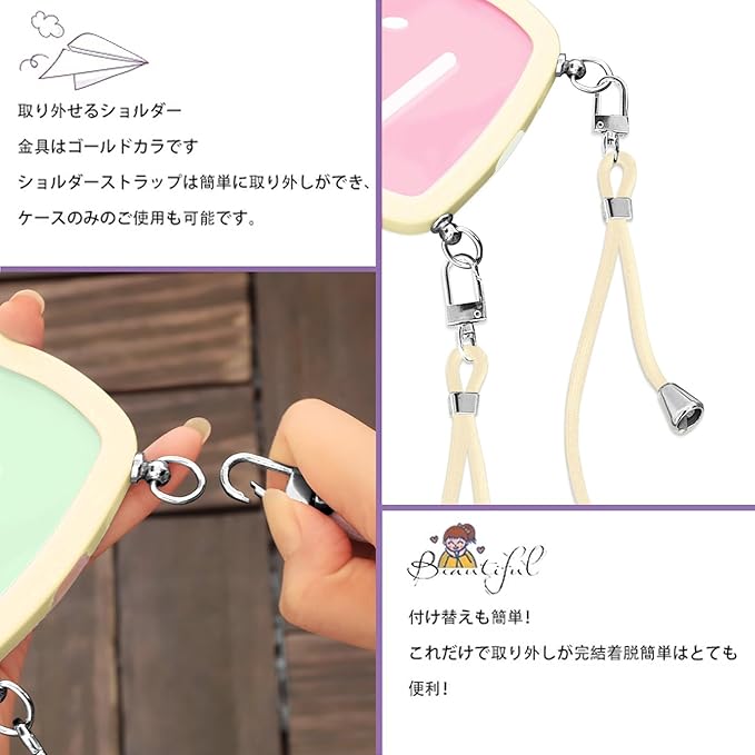 【使いやすさ・長さ調整可能】柔らかいナイロンストラップで首を快適に保ち、金属製のアジャスタブルエンドで、快適な長さに調整できます、手を自由に、ストラップの全長は1.3メートルです。ストラップを取り外して、電話ケースを単独で使用できます。