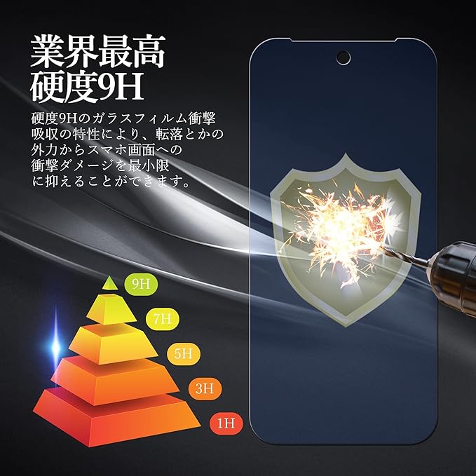 【日本メーカー製ガラス採用】:高品質の日本製旭硝子を原材料とし、耐衝撃性と耐傷性に優れています。衝撃吸収の特性により、携帯電話を保護し、転落とかの外力からスマホ画面への衝撃ダメージを最小限に抑えることができます