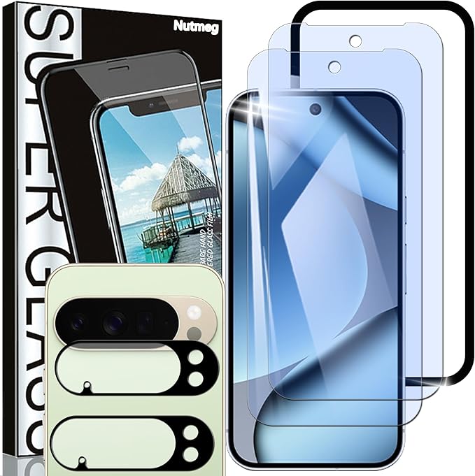 Nutmeg 対応【2枚+2枚+ガイド枠付き】Google Pixel 10 Pro XL 用の ガラスフィルム ブルーライトカット+Pixel 10 Pro XL 用の カメラフィルム【眼精疲労軽減 効果的に近視を予防でき】グーグルピクセル10 プロ xl 用の 保護フィルム 強化ガラス フィルム 日本旭硝子素材製 衝撃吸収 指紋防止 硬度9H 飛散防止 撥水撥油 干渉しない 貼り付け簡単 | KAZESHOP