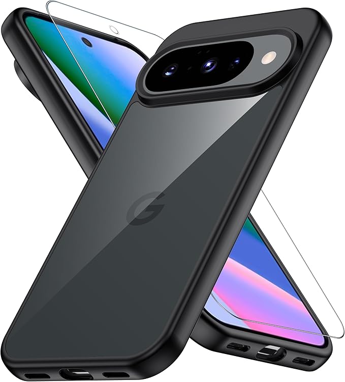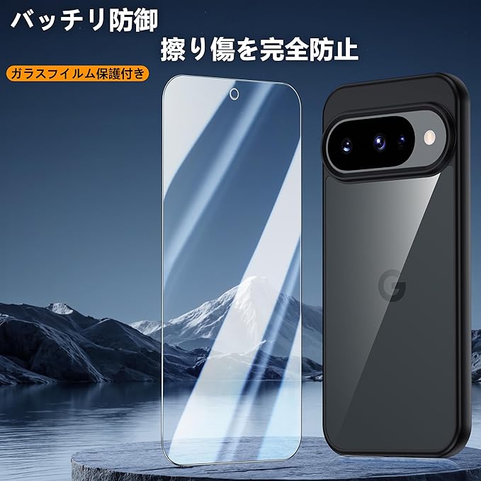 Google Pixel 10 / 10 proケース ブラック 黄変防止 グーグルピクセル10/10pro 専用 耐衝撃 ガラスフイルム保護付き 指紋防止 落下防止 耐久性 ストラップホール付 薄型 軽量 ソフトカバー ワイヤレス充電対応 googleピクセル10/10プロ用 gogogo | KAZESHOP