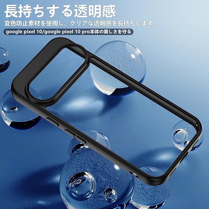 【透明度が高い】高級熱可塑性ポリウレタン(TPU)素材を採用し、常に透明感を保ち、長時間使用しても黄色に変わりません。透明で、グーグル ピクセル 10/グーグル ピクセル 10プロケースをつけてもpixel 10/pixe 10pro本体の視覚効果を損なわず、本体の色をそのまま。