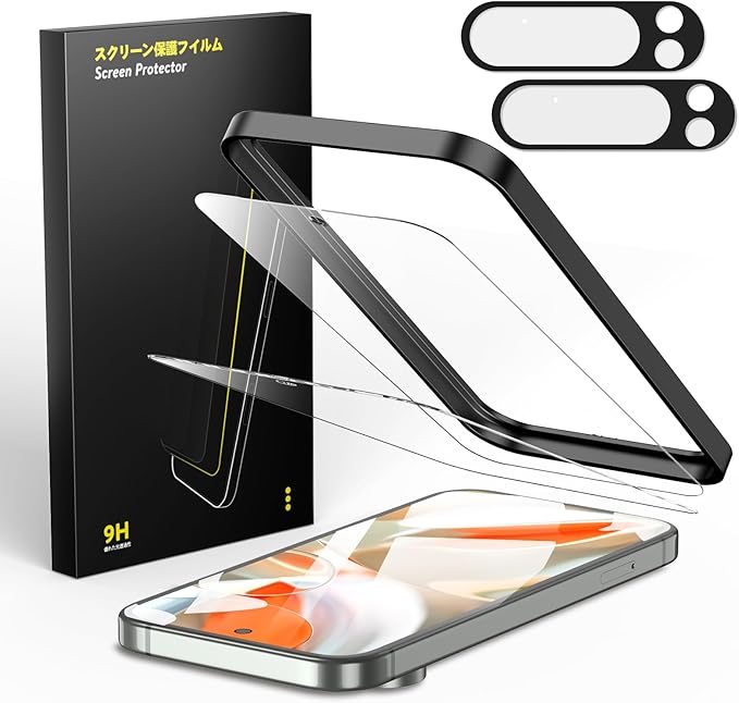 ガラスフィルム Google Pixel 9 Pro XL 用 2枚 + カメラフィルム 2枚 旭硝子素材製 【指紋認証対応】【ガイド枠付き】強化ガラス 液晶保護 9H硬度 耐衝撃 気泡防止 高感度タッチ 指紋防止 防水撥油 飛散防止 ピクセル 9 Pro XL 対応 | KAZESHOP