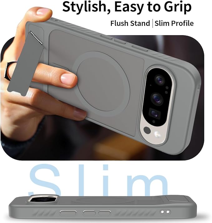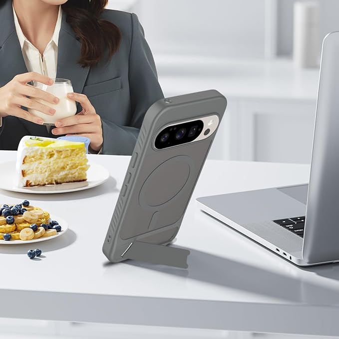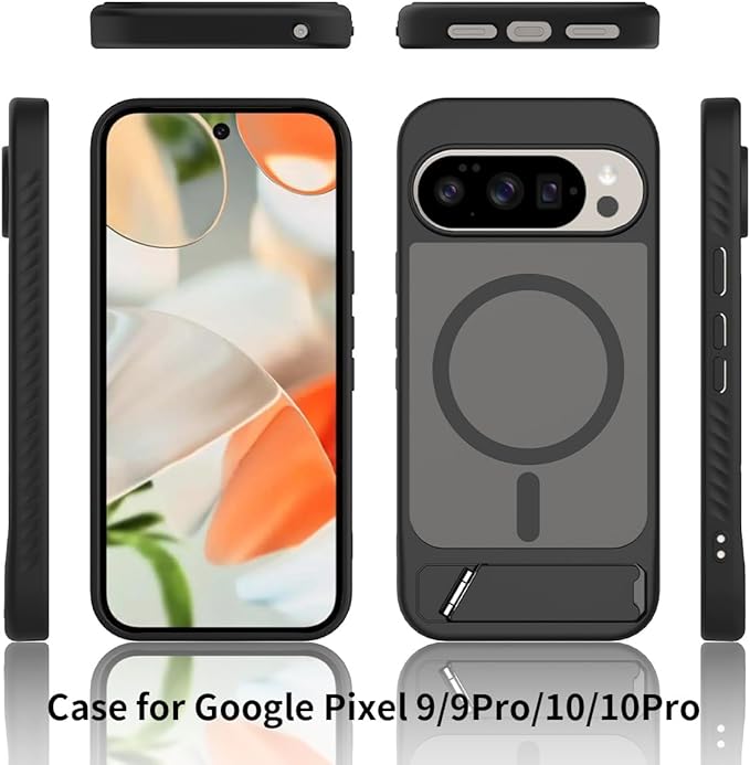 Google Pixel 9 / 10 用 ケース Pixel 10 / 10 Pro 用 ケース スタンド付き マグネット搭載 ピクセル10 スマホケース 半クリア 隠しスタンド マット感 横/縦置き TPU ワイヤレス充電 Pixel10Pro カバー 半透明 グレー | KAZESHOP