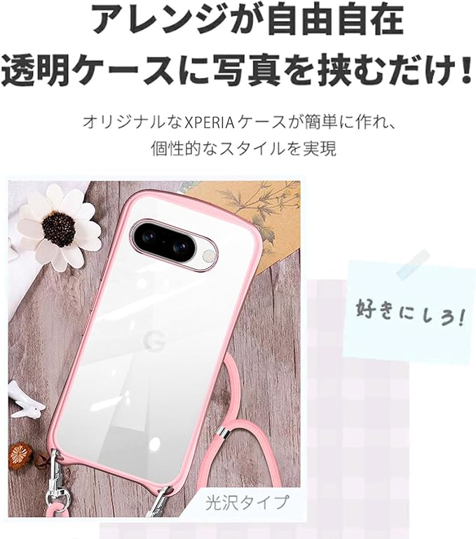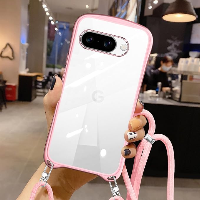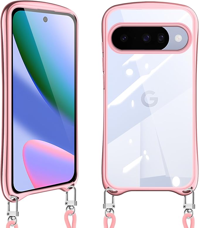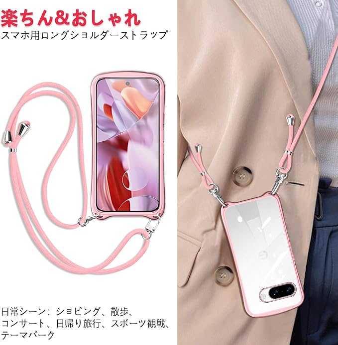 Google Pixel 10/10 Pro ケース ショルダー クリア ピクセル10/10Pro スマホケース カバー 耐衝撃 肩掛け 首掛け 可愛い かわいい 韓国 透明 TPU 長さ調整可能 取り外し可能(ローズゴールド) | KAZESHOP