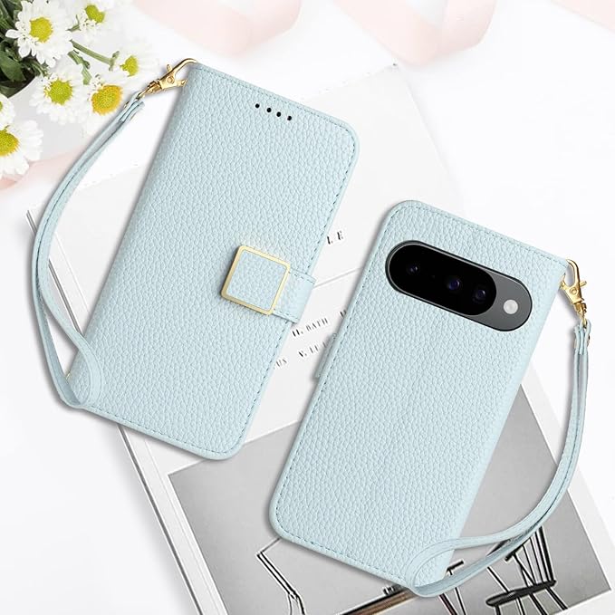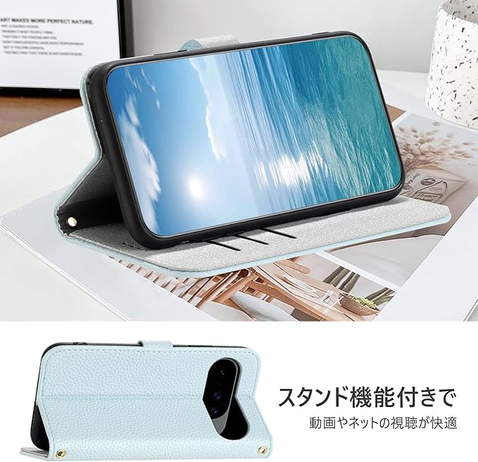 Google Pixel 10 ケース手帳型 人気 スマホケース ピクセル 10ro 財布型 カバー カードポケット付き 軽量 薄型 全面保護 贈り物 Pixel10 カード収納 スタンド機能 横置きスタンド機能 高級PUレザー 上質な手触り 擦り傷防止 ケース (Google Pixel 10/10 Pro 6.3 inch対応) - アイスブルー | KAZESHOP