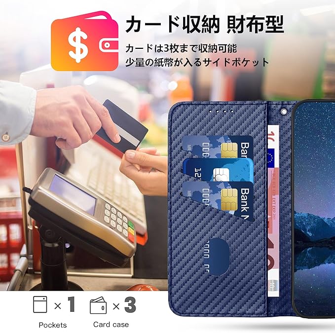 【上質な素材】このケースの外装は高品質のPU素材とカーボンファイバーの質感で作られており、手に馴染み、傷防止、指紋防止、優れた熱と衝撃吸収性を持っています。内側はソフトなTPU素材で携帯電話を保護し、着脱も簡単です。また、ケースは携帯電話を360 保護し、カメラレンズはスクリーンより少し高い位置に設計され、全周を覆っているため、あらゆる角度からの落下に対する安全性を高めています。