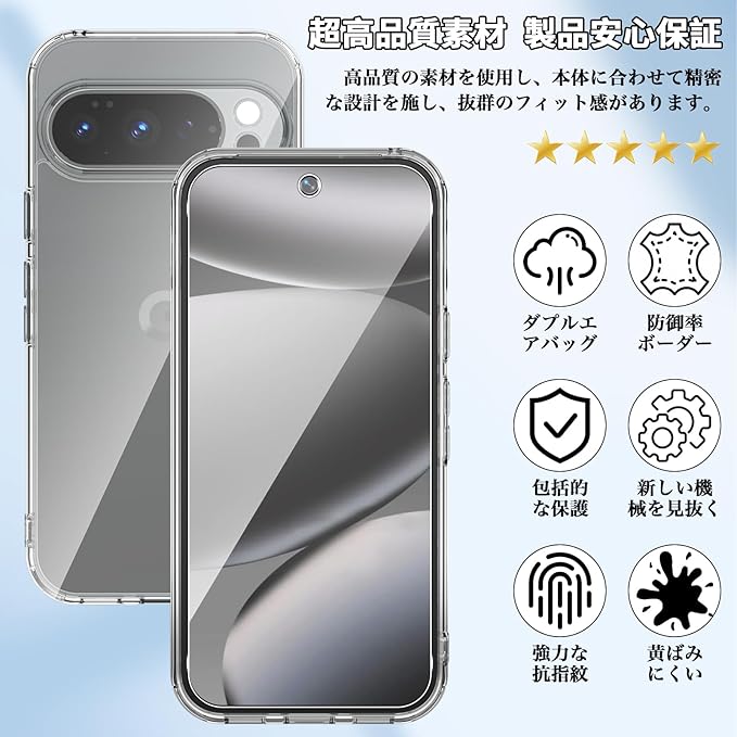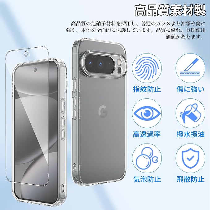 【1個+2枚セット】For Google Pixel 10/10 Pro ケース(1個)+ガラスフィルム(2枚) Pixel 10/10 Pro 対応 保護ケース Greerass ガラスフィルム付き 薄型 超軽量 耐衝撃 擦り傷防止 指紋 汚れ防止 手触り良い 着脱簡単 (クリア) | KAZESHOP