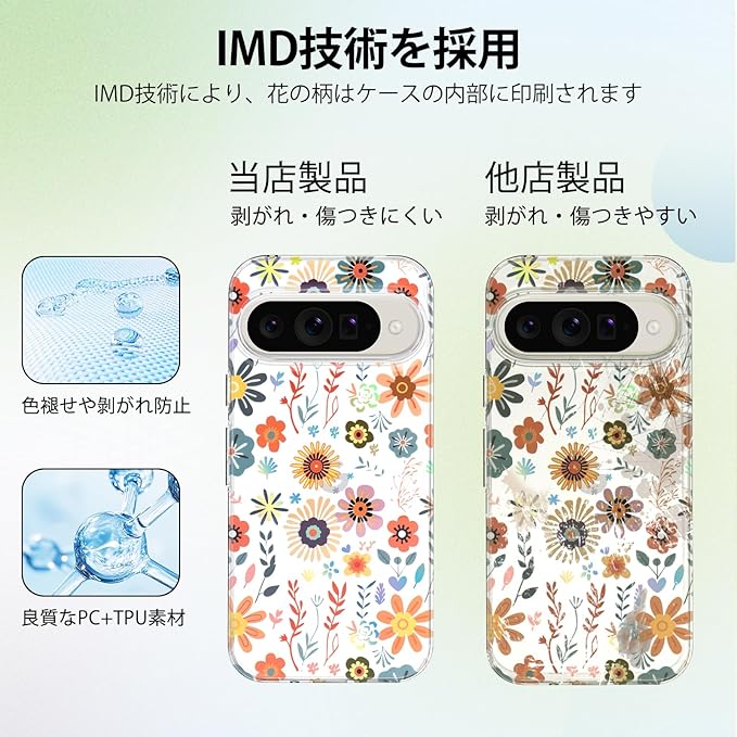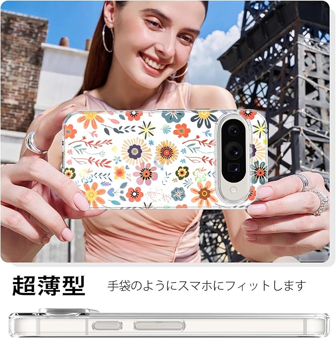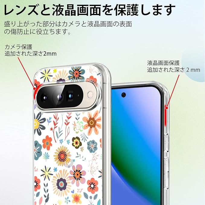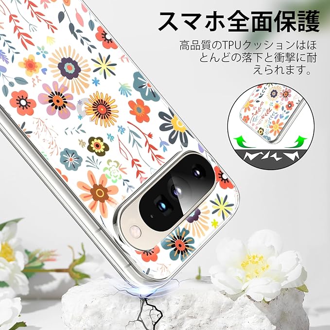 【保護性と美しさを兼備】優れたPCとTPU素材を使用し、ピクセル10/ピクセル10proケース全体の作りはしっかりとでき上がっており、スマホを不意に落としても衝撃と損傷からスマホを保護できます。印刷もIMD技術により色彩が更に鮮やかに見え、透明で薄型のスタイルプラス花の柄はおしゃれで美しいです。
