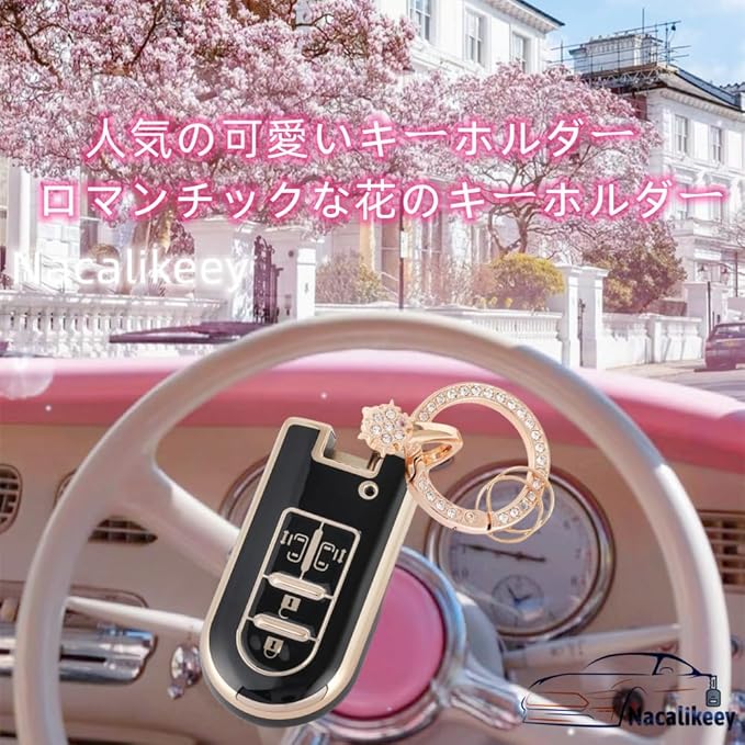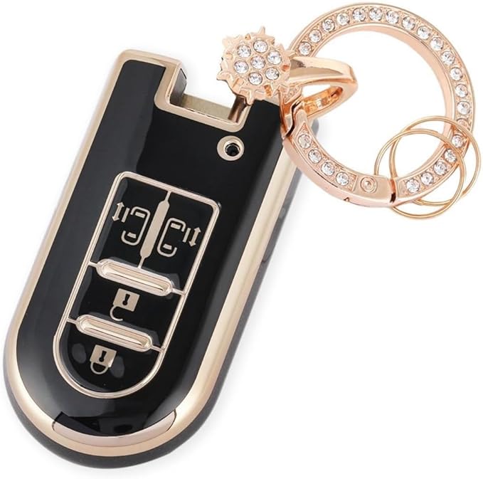 【Nacalikeey】キーケース適合トヨタダイハツ タンク タントキーカバー タントカスタム ウェイクキーホルダー新型ムーヴ キャンバス ムーヴカスタムスマートスノーキーホルダートヨタ タンク TANK ルーミー ROOMYきらめきキーカバー 可愛のキーホルダー(4ボタン,ブラック) | KAZESHOP