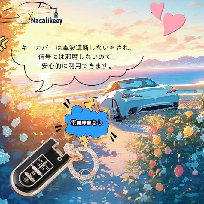 【遮断しない】キーカバーは電波遮断しないをされ、信号には邪魔しないので、安心的に利用できます。花の形、おしゃれでかわいい!