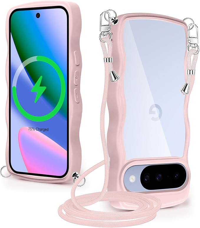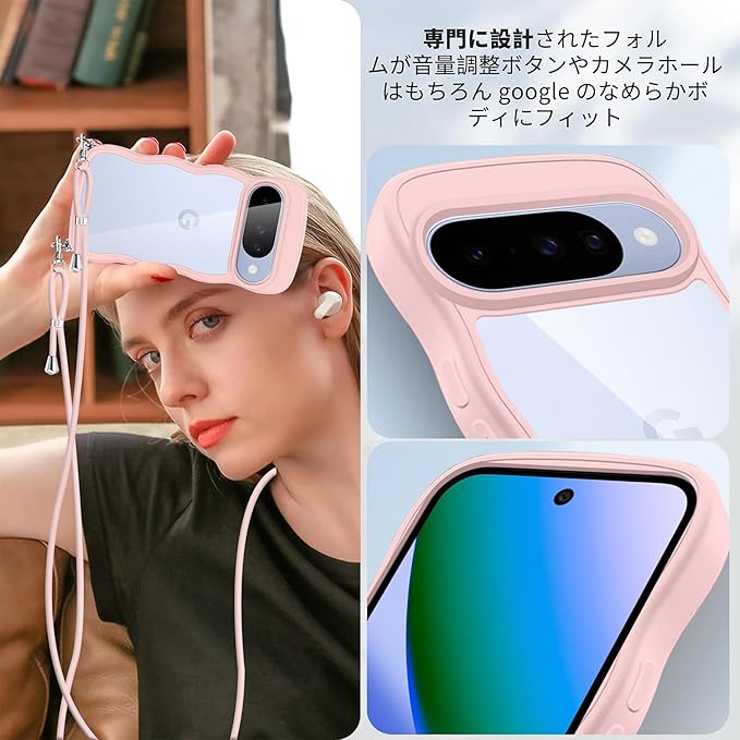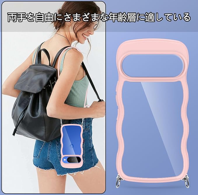 Google Pixel 10/Google Pixel 10 Pro ケース クリア ショルダー 耐衝撃 ピクセル10/10pro スマホケース カバー 薄型 軽量 首かけ 肩掛け 縄掛けケース ストラップ付き 取り外し可能 長さ調整可能 ワイヤレス充電対応 透明(ピンク) | KAZESHOP