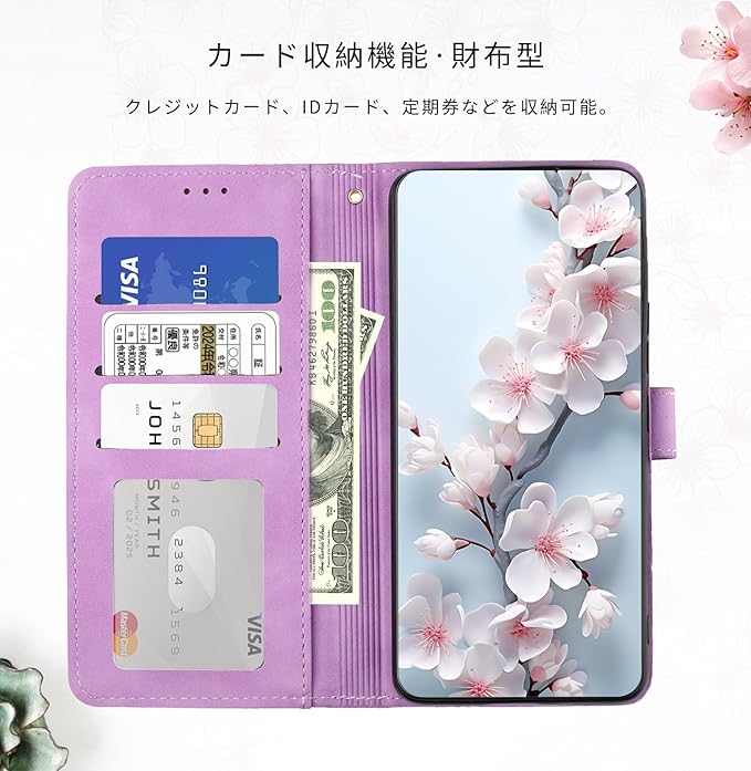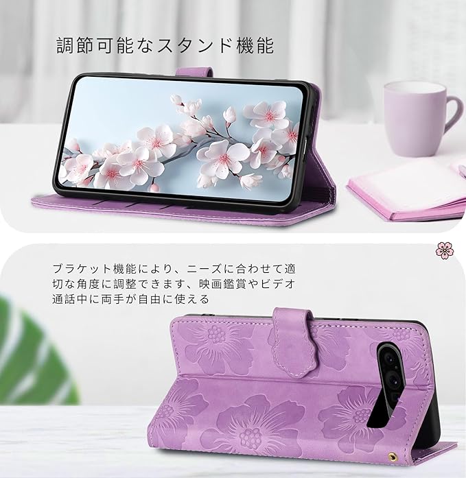 Google Pixel 10/10 Pro ケース 手帳型 Pixel 9/9 Pro ケース 美しい桜の柄 グーグルピクセル10 スマホケース 財布型 高級PUレザー googleピクセル10 カバー 耐衝撃 pixel 10 pro カバー カード収納 ピクセル9 携帯カバー スタンド機能 花柄 マグネット開閉式 (リストストラップ付き) 【パープル】 | KAZESHOP