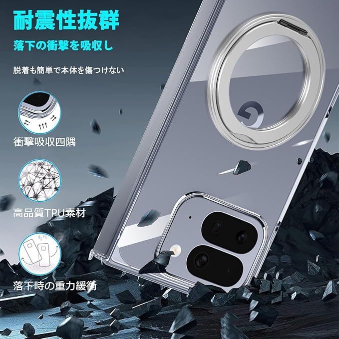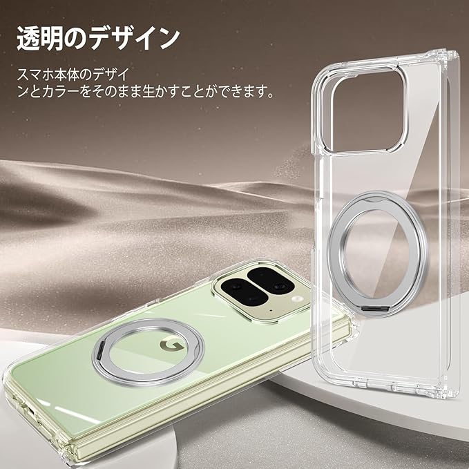 Google Pixel 10 Pro Fold 用 ケース クリア 360 回転スタンド スマホケース グーグル ピクセル 10プロ フォールド カバー リング付き レンズ保護 PC 黄ばみ防止 透明 人気 カバー 耐衝撃 全面保護 おしゃれ(クリア) | KAZESHOP