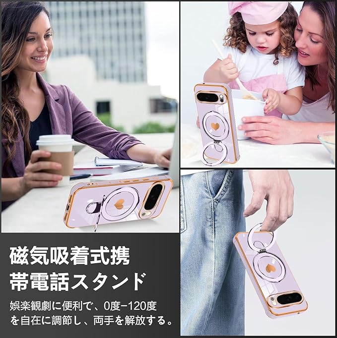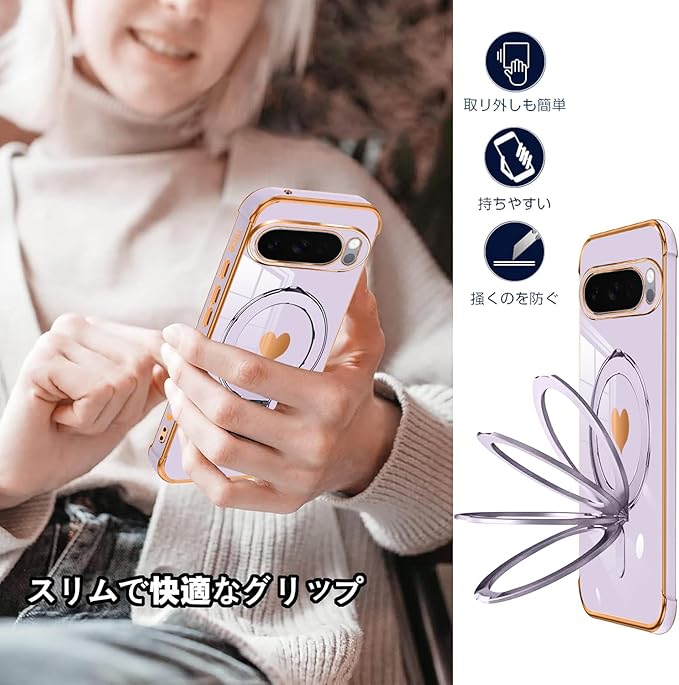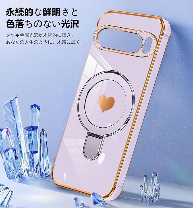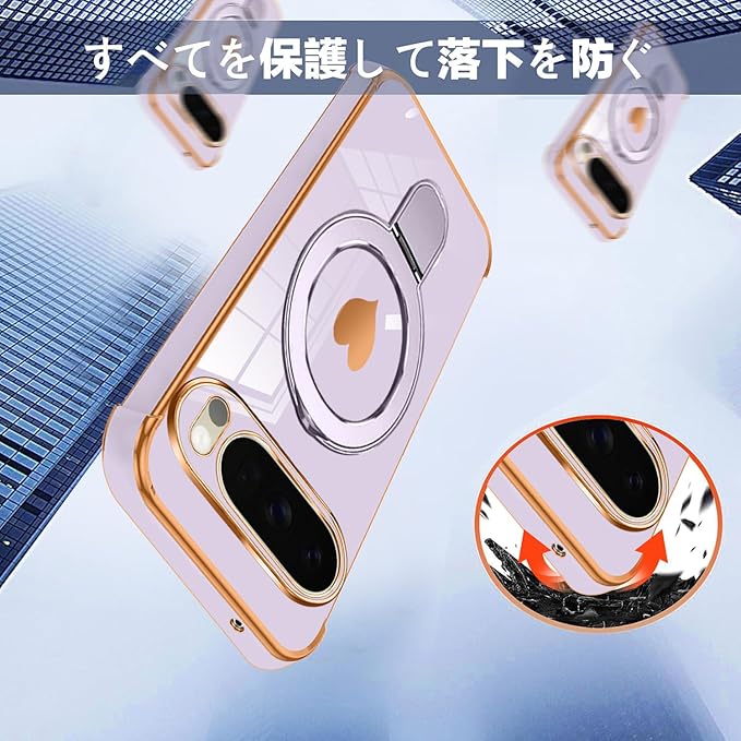 Google Pixel 10 Pro XL ケース MagSafe対応 リング スタンド機能 縦横両対応 ワイヤレス充電 レンズ保護 耐衝撃 携帯カバー グーグル ピクセル10 Pro XL カバー マグネット搭載 車載ホルダー マグセーフ対応 おしゃれ スリムケース ソフト シンプル(パープル) | KAZESHOP