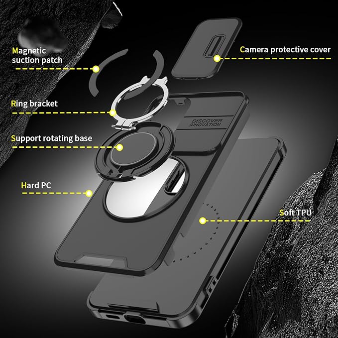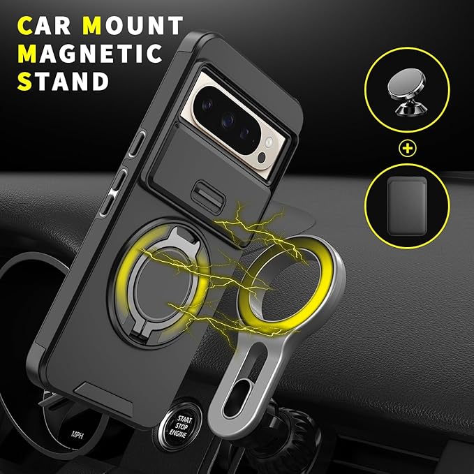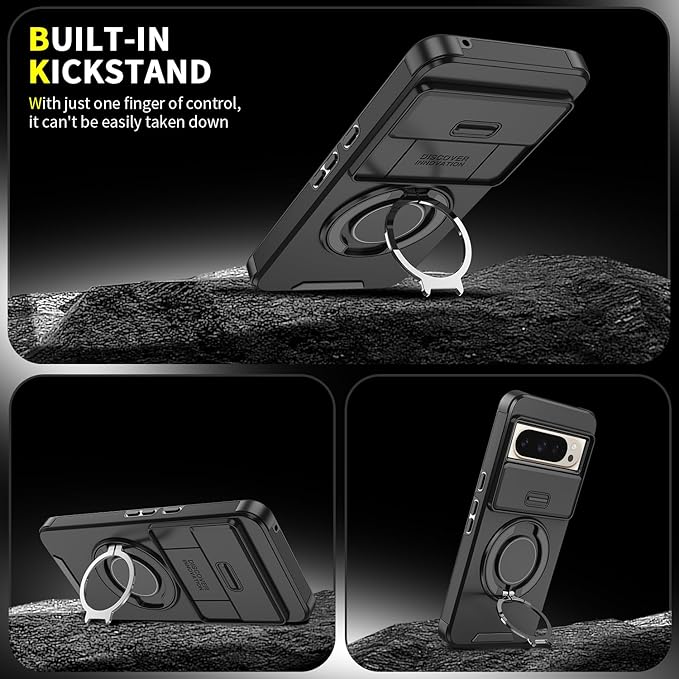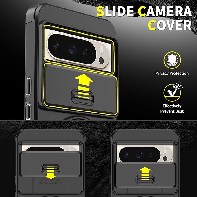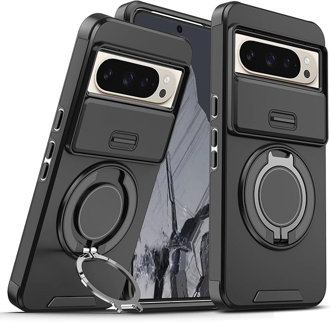 Anlalish携帯ケース 適用する Google Pixel 10 Pro ケース 持っているカメラ保護 耐衝撃 Google Pixel 10 Pro スマホカバー リング人 気 オシャレ車載ホルダー 対応 スライド 保護 カード (黒) | KAZESHOP