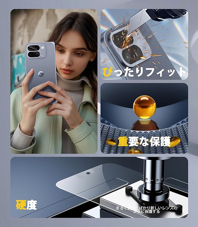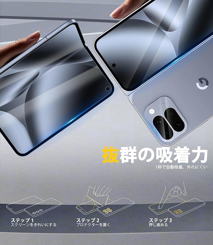 【高透明&高感度】超薄型ガラススクリーン・プロテクターは厚さ0.22mmで、最高レベルのスクリーン保護を実現しながら、本来の感度と触感を保持します。99%の高透明度により、高精細で鮮明な視聴体験を実現し、カメラレンズプロテクターはPixel 10 pro Foldスクリーンの本来の写真品質を維持し、ユーザー様にとてもクリアな表示と写真撮影の体験を与えます。