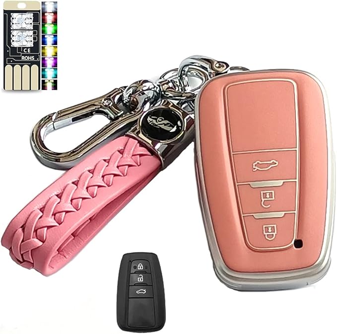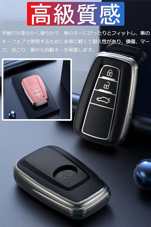 トヨタ キーケース シリコン TPU 革柄 キーホルダー キーカバー TOYOTA C-HR プリウス カローラ RAV4 カムリ70系 ランドクルーザー プラド 2/3ボタン (新3ボタンピンク) ピンク | KAZESHOP