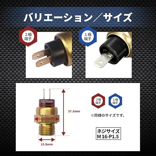✅導通:アース制御/ネジサイズ:M16/P1.5/作動温度:ローテンプ85度/1極端子