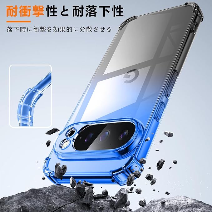 対応 Google Pixel 10 Pro 用 ケース クリア 薄型 グラデーション色 軽量 tpu 耐衝撃 透明 おしゃれ 黄変防止防塵一体型 人気 ピクセル 10 プロ 用 携帯カバー ブルーブラック MD-SXJB-80-03 | KAZESHOP