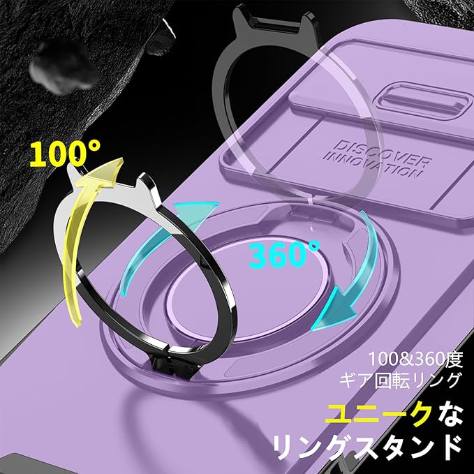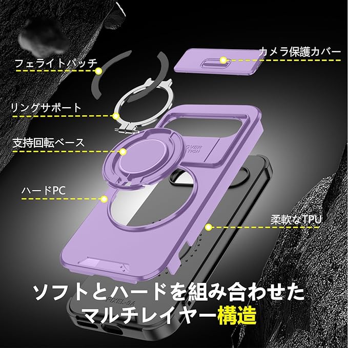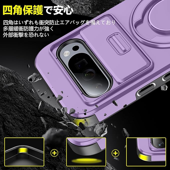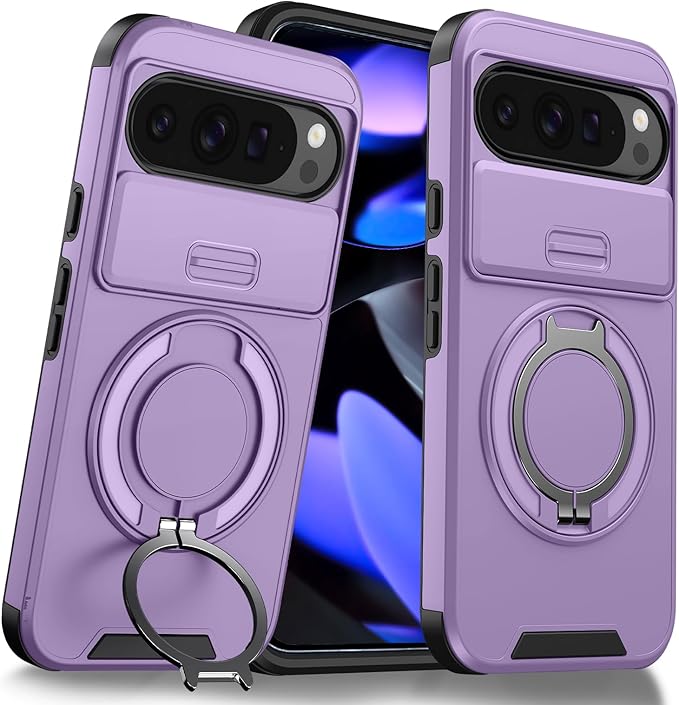対応 Google Pixel 10 Pro XL 用 ケース スタンド付き リング付き 耐衝撃 レンズ保護 スライドカメラカバー TPU+PC 軽量 滑り止め 落下保護 スタンド機能 車載ホルダー対応 ピクセル 10 プロ XL 携帯ケース 紫 R-LK-GP10PXL-04 | KAZESHOP