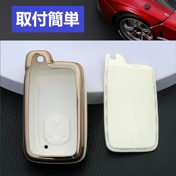 【可愛いと高級な質感】キーケースの表面は三層特殊なコーティングを採用し、鍵を金属のように輝いて、高級な輝きと質感で、かなり華やかな外観をしています。本キーケースを取り付けるだけで愛車のスマートキーは高級車のキーに相応しく様変わりします。何気なくスマートキーを出すだけで周りの注目を集めます。見た目はかっこよく、高級感もあり! それでも可愛いです!