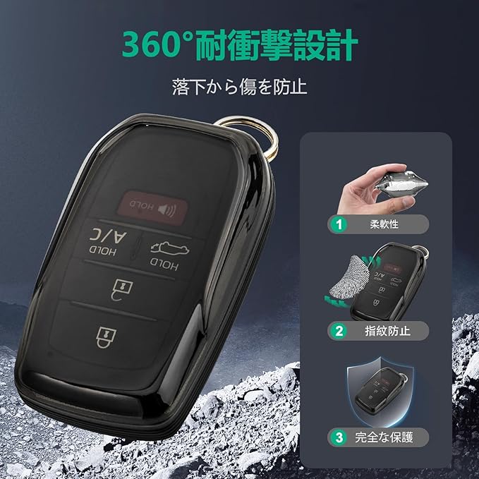 【超薄型&超軽量】厚さが約1.2mmと薄さなので、まるでキーケースを付けていないかのような質感。スタイリッシュなだけでなく、落下・傷・衝撃からキーをしっかり保護します。