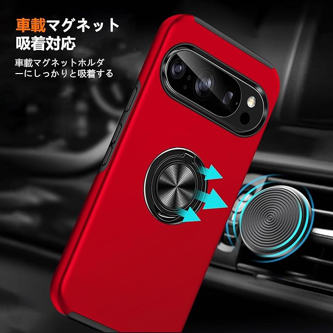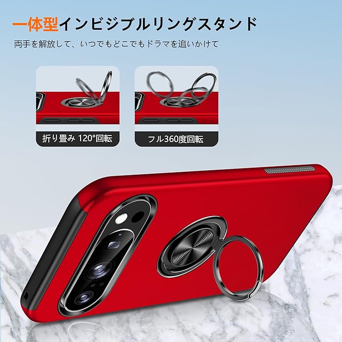 対応 Google Pixel 10 Pro XL 用 ケース リング付き 耐衝撃 内蔵スタンド付き 衝撃吸収 tpu 薄型 擦り傷防止 シリコン スタンド機能 車載ホルダー対応 二重構造 PC バンパー スマホケース 全面保護 360 回転 おしゃれ 人気 ピクセル 10 プロ XL 用 携帯カバー 赤 Q44-YSZH-GP10PXL-HON | KAZESHOP