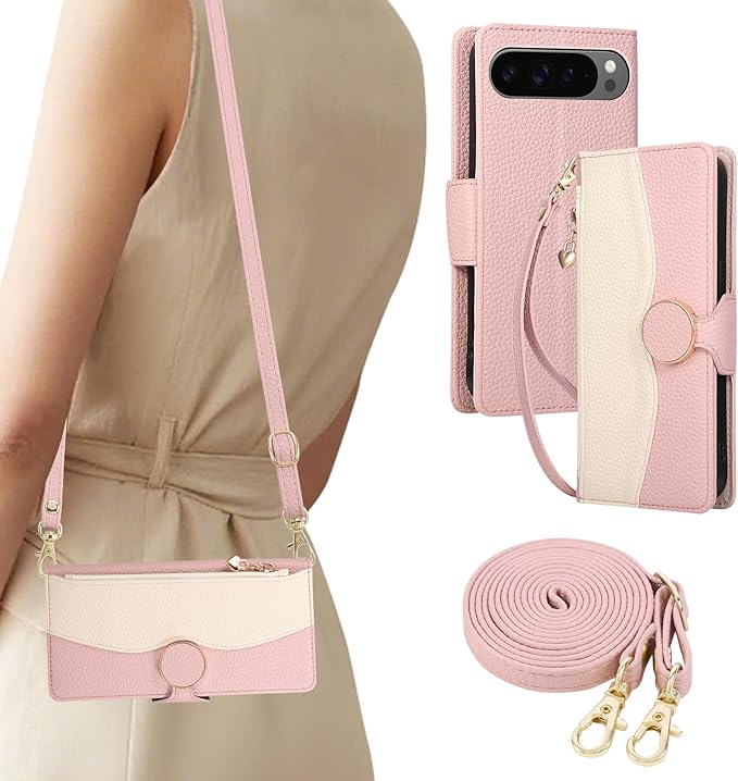 用の グーグル ピクセル10プロ ケース 手帳型 For Google Pixel 9 Pro スマホケース ショルダー ピクセル10 用 ケース手帳型 Pixel10Pro 携帯カバー Google Pixel 9 手帳型ケース 小銭入れ マグネット式 カード収納 スタンド機能 全面保護 ファスナー型 手首/肩掛けストラップ付 2色パッチワーク おしゃれ 人気 (ピンク) | KAZESHOP