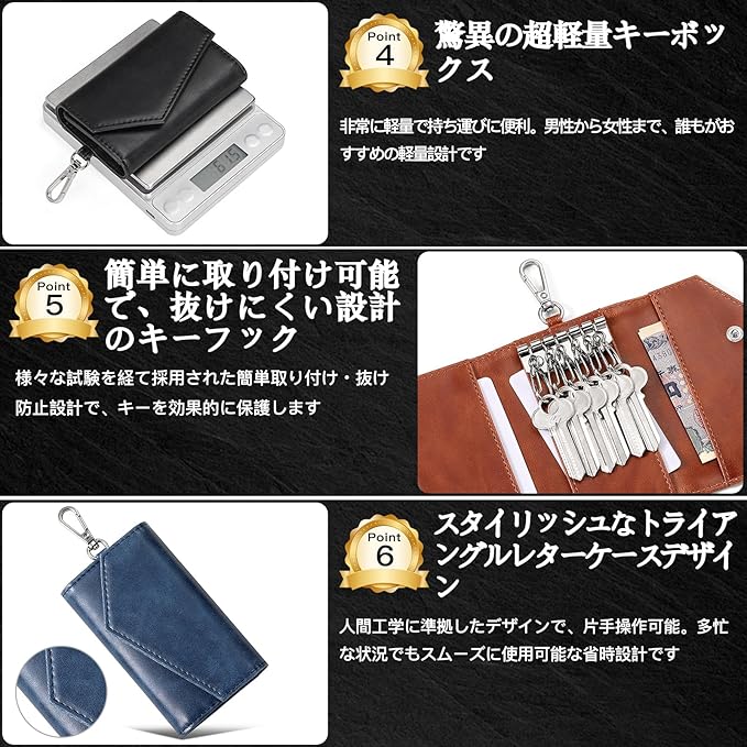 【機能性革新】 完全分離収納:鍵/カード/紙幣を層別管理、紛失・傷防止スマートキー対応:電波妨害なし(トヨタ・ホンダ等全車種検証済)3秒アクセス:特殊ヒンジ構造で片手開閉可能