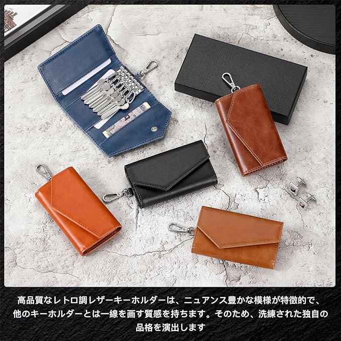 [MORFFEYIA] キーケース メンズ 6連キーフック 高級ビンテージPUレザー 自宅鍵 自転車鍵 オフィス鍵対応 紙幣ポケット ICカード 銀行カード収納 多機能 誕生日 クリスマス 父の日 母の日 | KAZESHOP