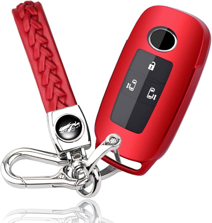 トヨタ 専用 TOYOTA ライズ RAIZE ルーミー ROOMY (2020年9月~) 専用 キーケース キーカバー 本革 キーホルダー エンジンスタート Eボタン 対応 (トヨタ専用セット、レッド) | KAZESHOP