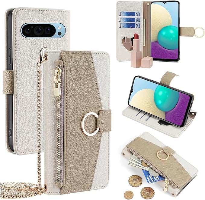 For Google Pixel 10/10 Pro ケース 手帳型 ショルダー For グーグル ピクセル10プロ 財布型 カバー 肩掛け 斜めがけ 化粧鏡付き 女性 おしゃれ ロングストラップ ジッパー小銭入れ カード収納 横置き 上質な手触り 耐汚れ気質 肌感レザー 防指紋 耐久性 贈り物 COCOCLOUD ホワイト | KAZESHOP