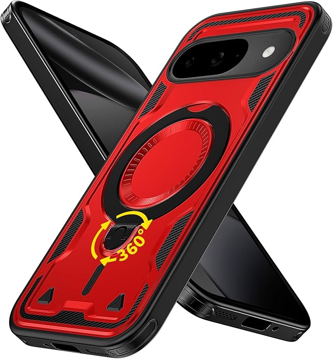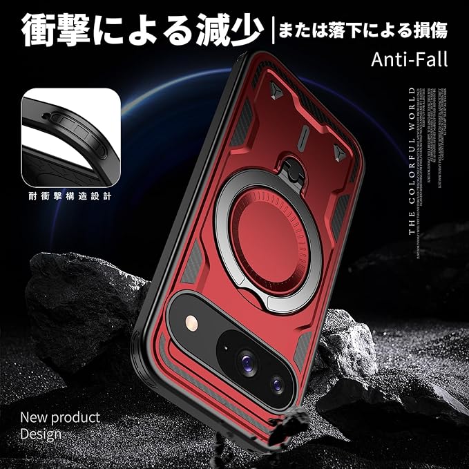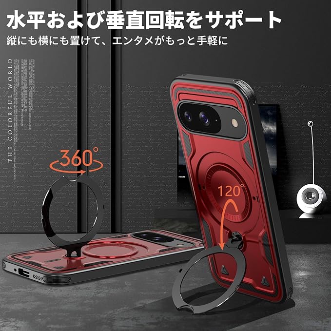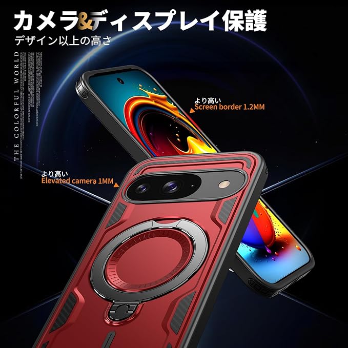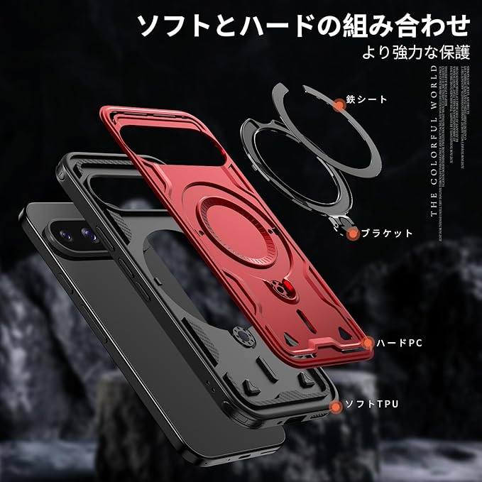 Google Pixel 10/ 10 Pro 用 ケース 耐衝撃 スタンド付き Magnetic対応 グーグルピクセル10/ 10 Pro カバー リング TPU+PC ワイヤレス充電 米軍MIL規格取得 スタンド機能 (レッド)117-PX10-03 | KAZESHOP