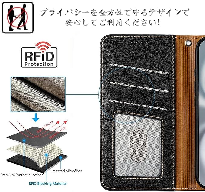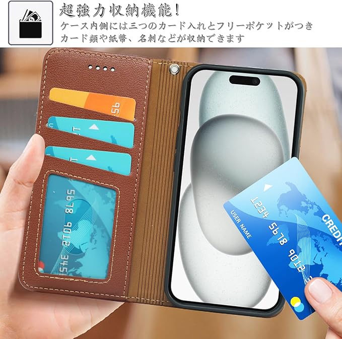 【カード収納】Pixel 10 5G/Pixel 10 PRO 5G 財布型スマホケースの内側には3つのカードポケットが付いています。少量の現金とカード類を携帯することができ、通勤や通学に重いバッグを背負う必要はありません。