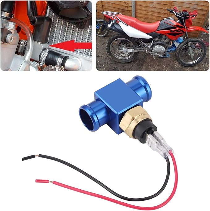 サーモスタット水温センサー ラジエータ温度スイッチ 水温センサーパイプ ファンサーモスタット水温スイッチキット 直管径22mm ヤマハ125-450ccYZ YZF WR DT XTTTR取替え用 ホースクランプ付き パイプ+センサー 配線式 (青) | KAZESHOP