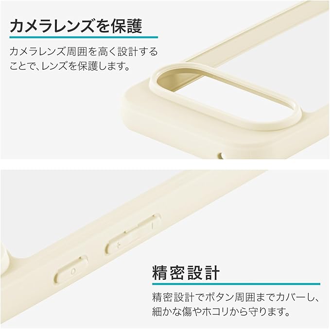 【精密設計】カメラレンズ周囲を高く設計することでレンズを保護。ボタン周囲までカバーする精密設計で、細かな傷やホコリから守ります。