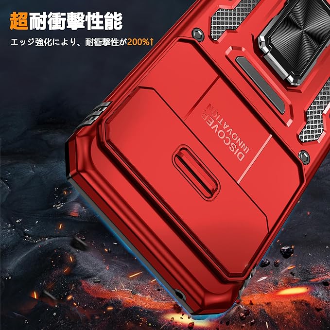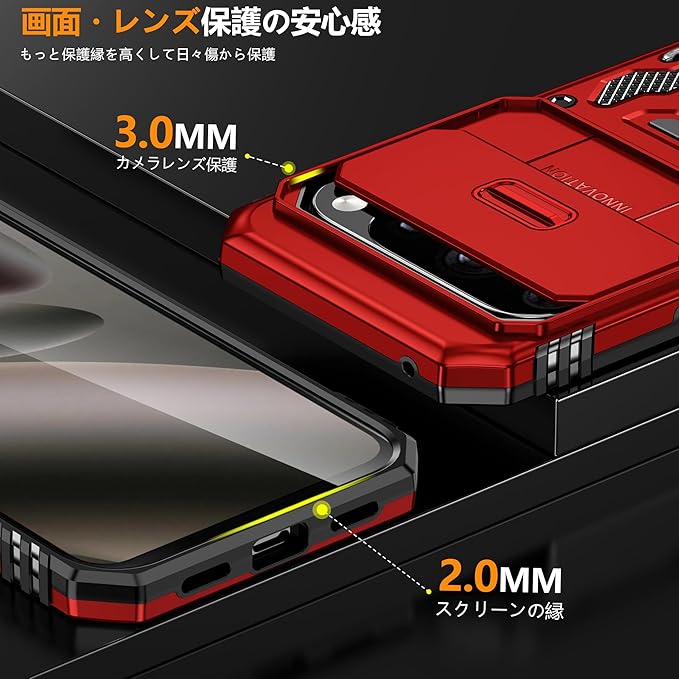 対応 Google Pixel 10 Pro XL 用ケース リング付き スライド式カメラカバー 衝撃吸収 ピクセル 10 プロ XL ケース 耐衝撃 一体型落下防止 スタンド機能 PC+TPU 二重構造 防塵 薄型 軽量 360度回転 保護携帯カバー 赤 MJJ-1064-08-02 | KAZESHOP