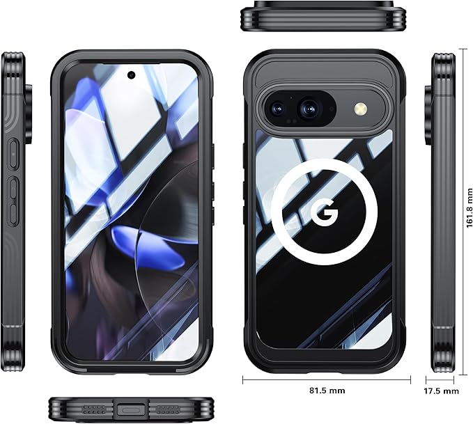 Google Pixel10 / Pixel 10 Pro ケース MagSafe対応 全面カバー 両面ケース ガラスフィルム付き 360度全面保護 ピクセル10 プロ カバー 耐衝撃 アウトドア ,ブラック