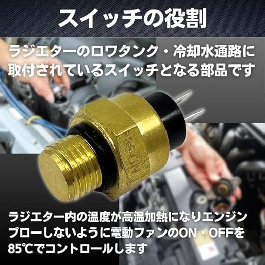 【性能と耐久性】高耐久性のあるファンスイッチで、長期間使用しても信頼性を保ちます 定期的な点検と交換により、安心して車両を運転することができます 特にこのローテンプサーモは、純正パーツより低温でファンを制御し、オーバーヒートを予防します 純正部品と比べてコストパフォーマンスが高く、リーズナブルな選択肢としていただければ幸いです