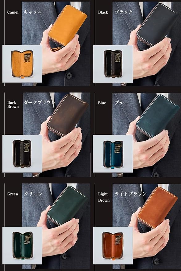 【本革クレイジーホースレザー】牛革の最表面の皮を使用したキーケース。牛革の最表面の皮は繊維が細かく、頑丈で耐久性にすぐれています。本革の中でもクレイジーホースレザーと呼ばれる革を使用して作られています。クレイジーホースレザーは品質の良い牛の原皮(馬の皮ではありません)を使用し、鞣した皮でしっとりとしたやや起毛したような質感が特徴的なレザーです。当スマートキーケースは起毛加工技術を採用し作られており、手触りが滑らかで耐久性にも優れています。「思わず誰かに見せたくなる」そんな革製品を目指して作りました。