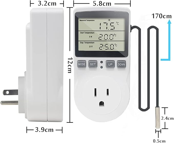 KT3100 デジタル プログラミング サーモスタット サーモスタット スイッチ ソケット コンセント 醸造 発酵 水族館 爬虫類 温室 保育園 発芽 加熱 冷却モード 15A 1800W 3m センサー プローブ 100V | KAZESHOP