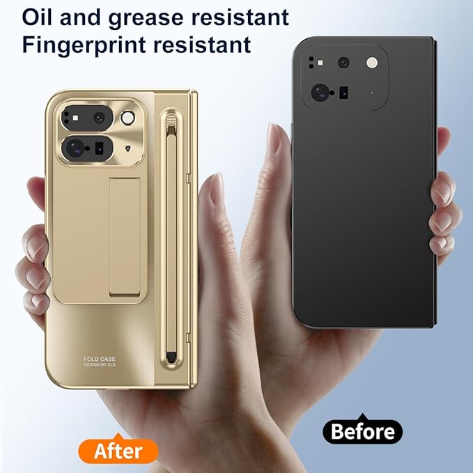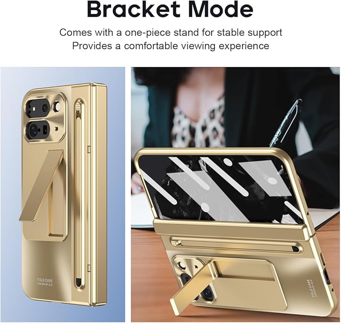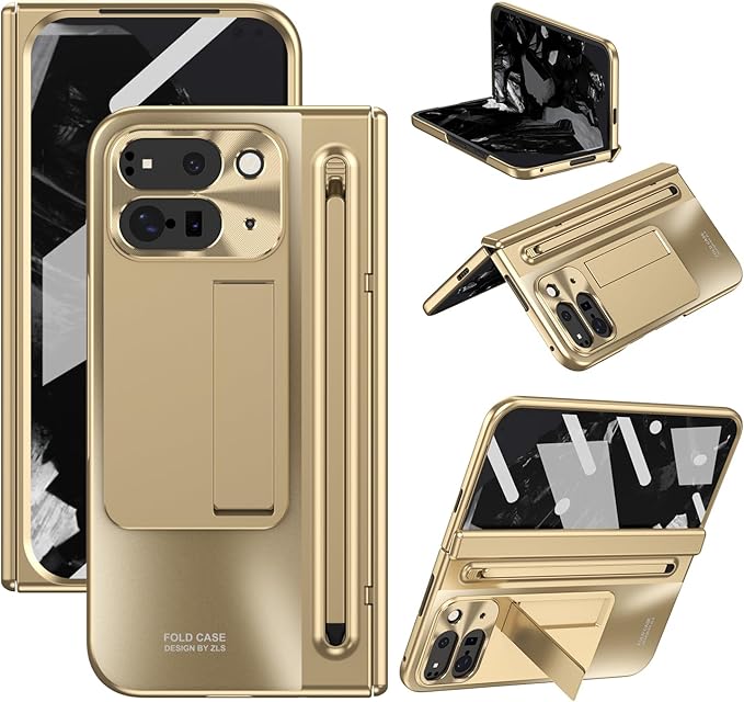 GG Pxl 10 Pro Fold / 9 Pro Fold専用 ケース 全面保護+強化ガラスフィルム+きんぞくラッカ+ペン 隠しスタンド機能 ヒンジ保護 ワイヤレス充電サポート 多機能統合型 手帳型 薄型 軽量 携帯カバー 面白い 個性 二層構造キラキラ 衝撃吸収 指紋防止 Beautycatcher - 金 | KAZESHOP