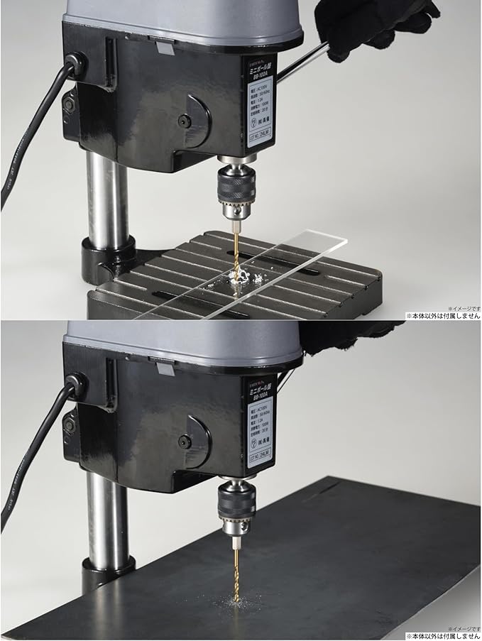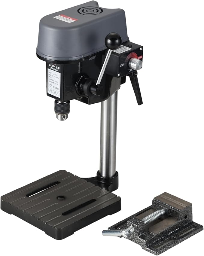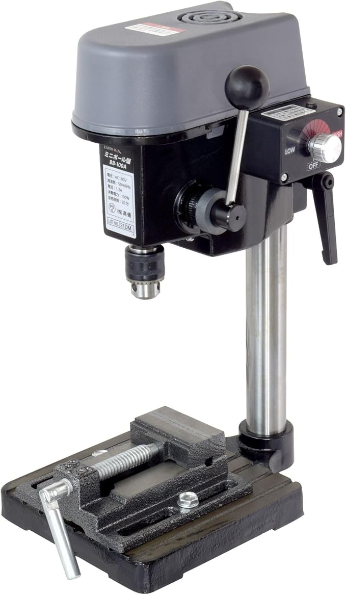 【仕様】本体(BB-100A)電圧:AC100V、周波数:50/60Hz、電流:1.2A、定格消費電力:100W、チャック能力:0.6~6.5mm、本体サイズ:約奥行250 幅190 高さ380(mm)、ベースのサイズ:約170 170mm、重量:約5kg、コード長:約1.6m、定格時間:20分