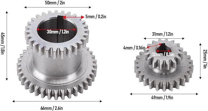 ギア仕様: このセットには、高さ45mm、穴の直径30mm、T37とT27の歯、スライド式の重複ギアが含まれ、高さ25mm、穴の直径12mm、T26とT16の歯